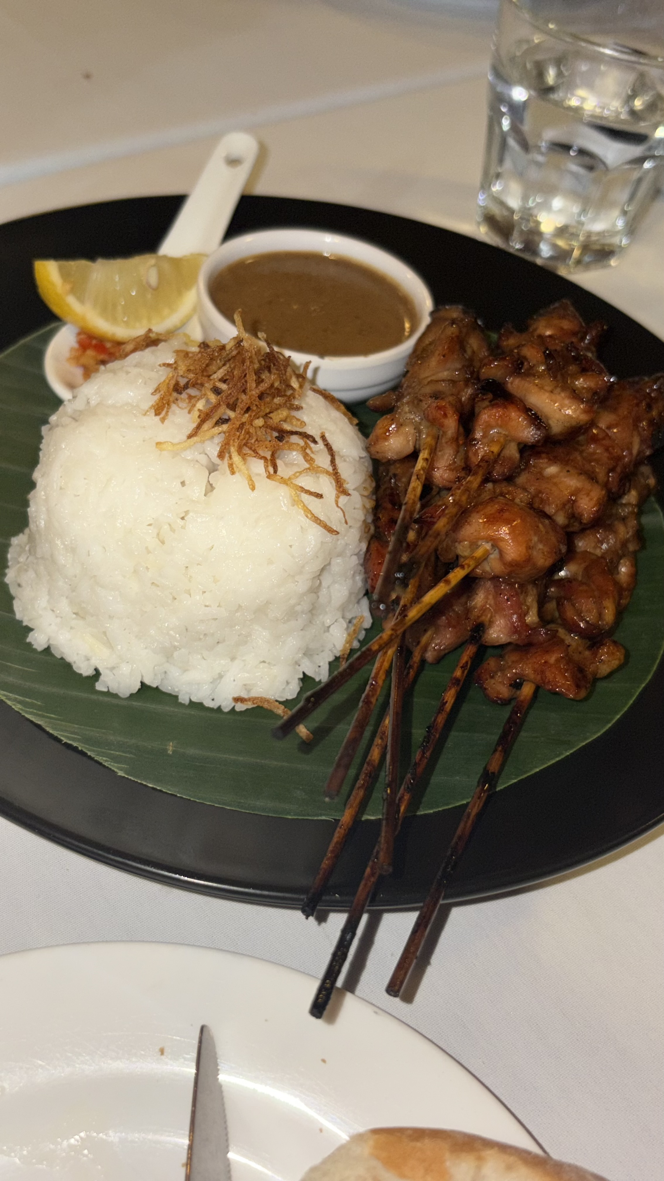 땅콩소스 치킨 사테를 먹었는데, 숯불에서 구운 고기향과 함께 짭짤하면서 찐득한 소스에 버무려진 치킨은 무적