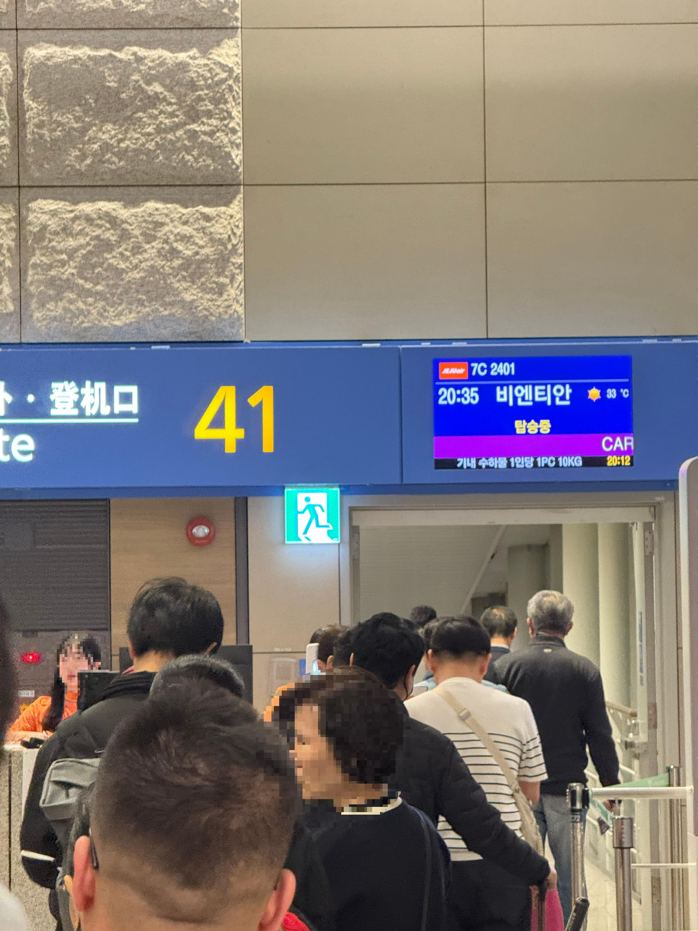 41번 탑승구에서 비엔티안행 비행기를 탑승했습니다.