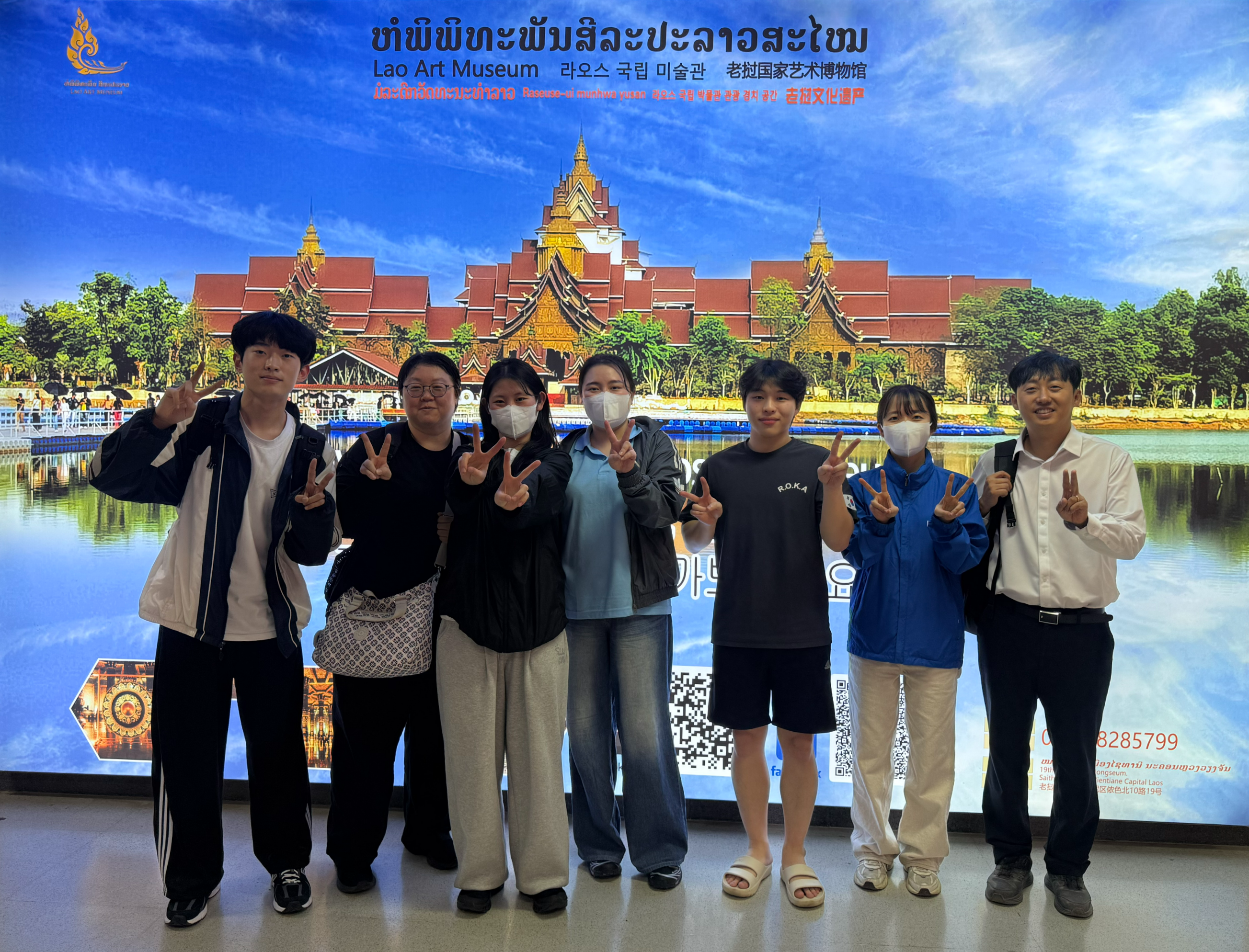 그래서 비엔티안 공항에서 기념 단체사진도 찍었어요
